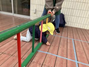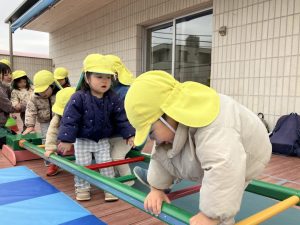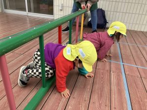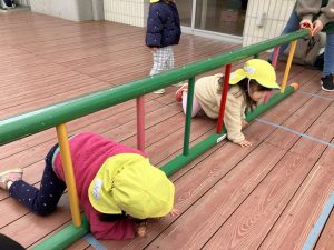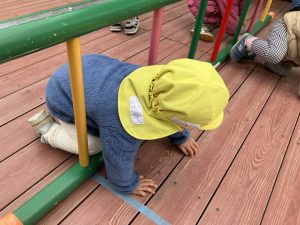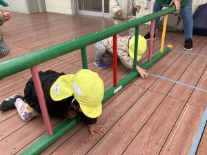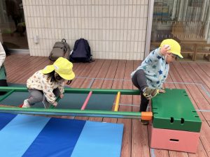 次ははしご渡り。バーをまたぐような形で進みました。