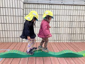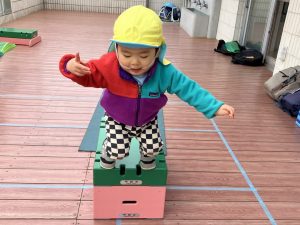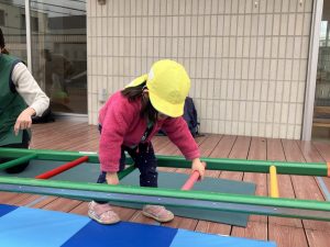 飛び石や一本橋と組み合わせてサーキットのように楽しみましたよ。こちらも、「順番」を経験しながら行いました。まだまだ難しいことではありますが、こうした経験の中で少しずつ待てるようになっている子もいますよ✨