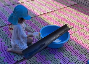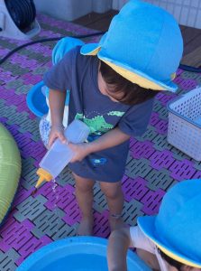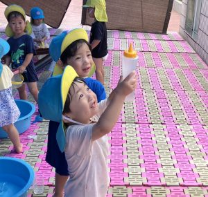 ↑上に向かって水を出して「花火!」と見立てて楽しむ子もいました♪