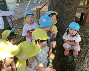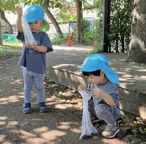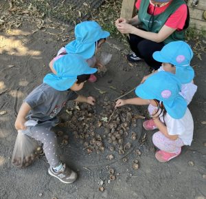 グラウンドでは、虫やどんぐりを見つけて遊びました。