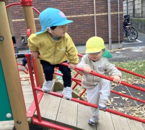 そのあとはグラウンドへ。しっぽとりや落ち葉で沢山遊びました。