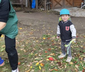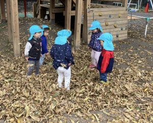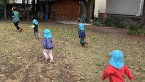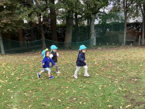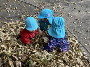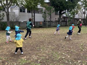 そのあとはグラウンドへ。しっぽとりや落ち葉で沢山遊びました。