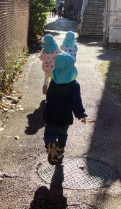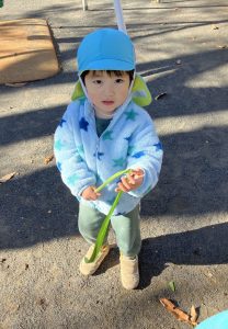 ↑長い葉っぱを見つけると、「これはウナギだよ!」とウナギに見立てて遊んでいました😊