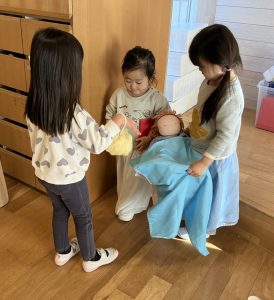 最初はドキドキもあり、話しかけにいけなかったり、動けなかったりしていましたが、少しずつ距離が近づいている様子がありました。最後には、「また遊ぼうね」と言い合いってお別れをしました。「ドキドキしたけど、楽しかった!」という姿もありました😊
