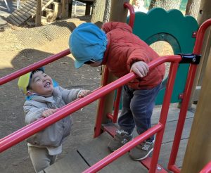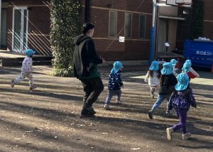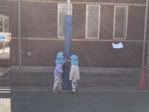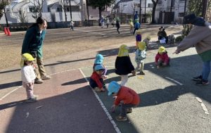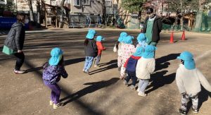 今日はグラウンドで、「おおかみさん今何時?」や色鬼をしました。初めてやるゲームでしたが、ルールをよく聞いて楽しみました。