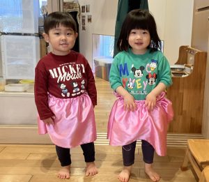 プリンセスのようなスカートを履いて「ダンスパーティーしよう!」と声を掛け合う姿があったので、音楽をかけて舞踏会のようにみんなでダンスを楽しむひとときもありました👑